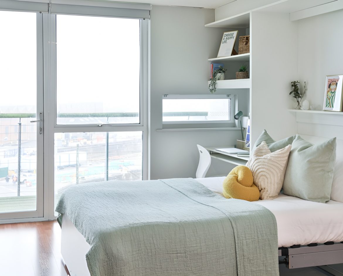 These spacious studios are all finished to the highest standards, and jam-packed with amazing features. Ensuite bathrooms and well equipped kitchens are just the beginning. There’s also communal chill-out areas with flat-screen TVs.