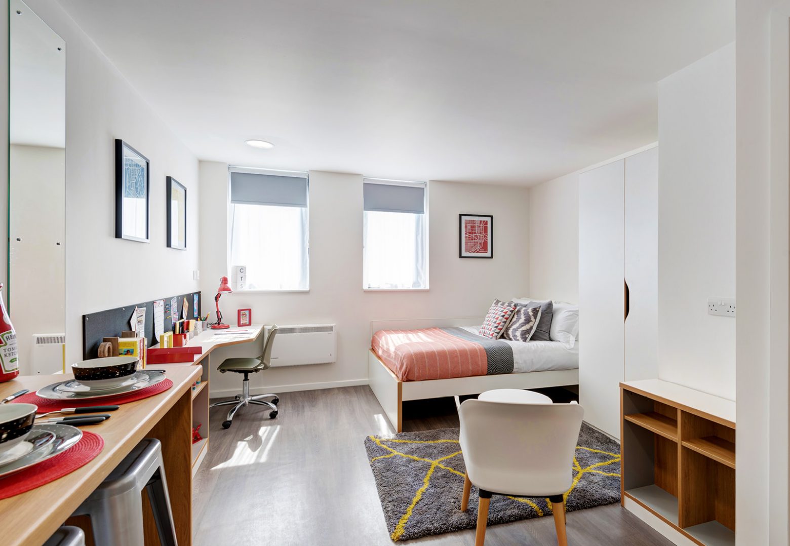 Make your home in one of our en suites or spacious studios! With high-quality fixtures and seriously stylish interiors. You’ll have a workspace, small double bed, bags of storage and an en suite shower room. And, in our studios, your very own well-equipped kitchen area. If you come as a couple, you don’t have to pay any extras!