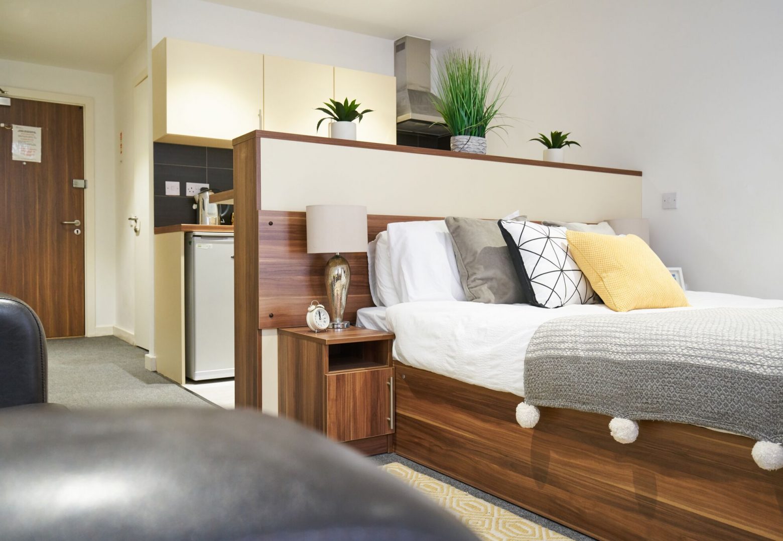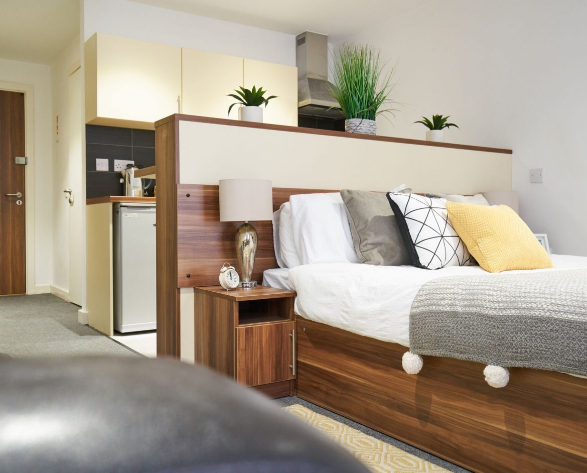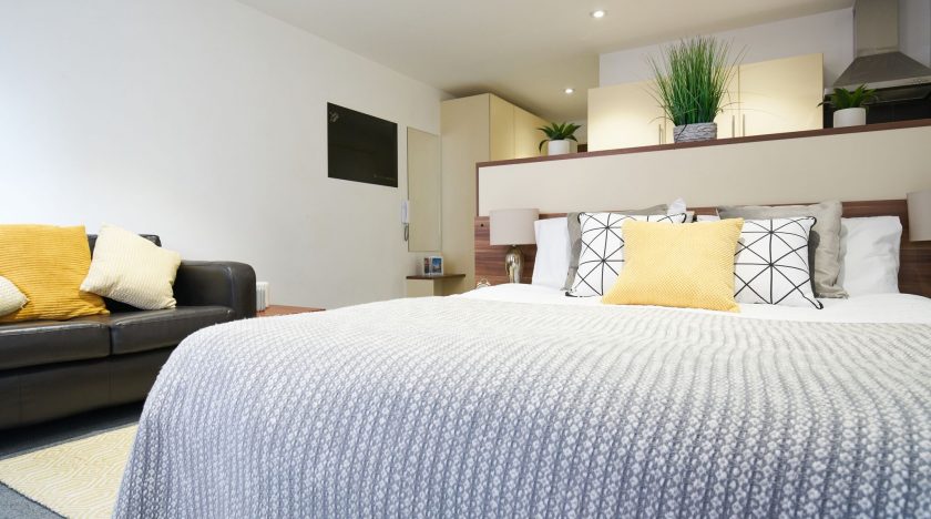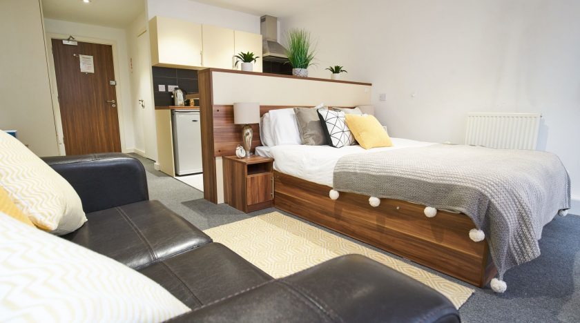 Windsor Court features modern, high specification studios finished to a superb standard. The studios are extremely spacious and come with a large, comfortable bed, en-suite bathroom with power shower, a TV, and your own chic, fully equipped kitchen. Some student rooms have a private balcony overlooking the city. There is also 100Mbps WiFi available throughout the building, an on-site laundry, and your studios will be cleaned every week.