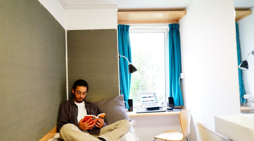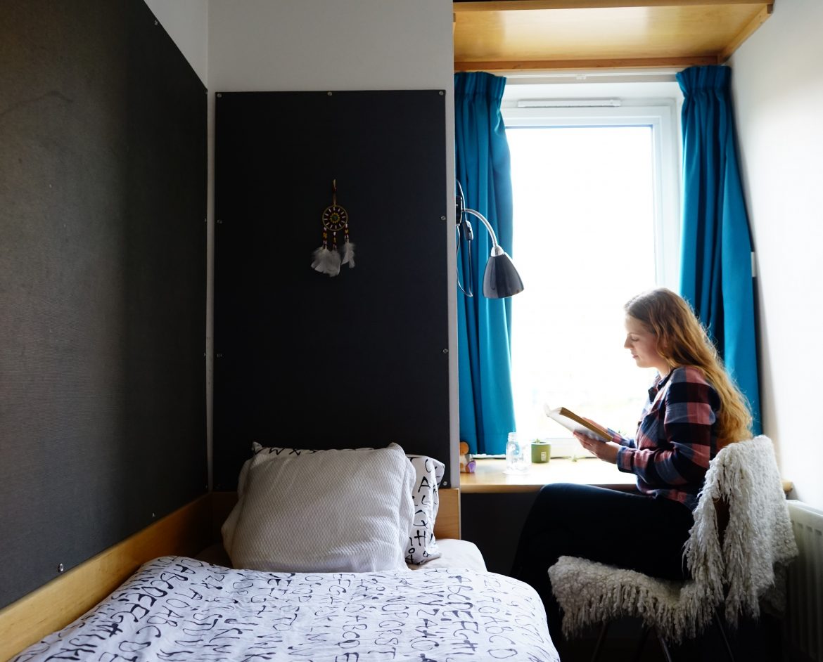 On each floor there are a number of kitchens where you can sit down to eat with your friends. The kitchens are equipped with all the things you would expect, such as cookers, microwaves, freezers and a food locker for each resident. There’s also some space for storing pots and pans, which you need to bring yourself, along with crockery and cutlery. Kitchens are cleaned daily.