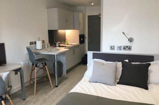 If you’re after student housing in Newcastle-Under-Lyme that’s right in the action, have a look at Hassell Street Apartments. These stylish student halls offer 30 self-contained studios with modern finishes and shared laundry facilities, and two separate lounge areas with TV and games tables. Location-wise, you’re right in the mix of things being smack-bang in the city centre, with loads of cafés, shops, bars, and restaurants only a short walk away. However, campuses are out of town, but you’re close to bus stops that can get you to lectures in around 15-minutes.