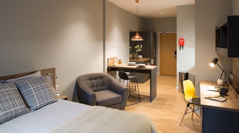 Whatever you need from your luxury student accommodation, Crown House can accommodate you – our range of studios and apartments includes a number of different options for size and furnishings, and even includes full one- and two-bedroom apartments. All our rooms include an en-suite with shower, and they all have access to our inclusive ultra-fast 300mb/s wi-fi. They all also include a fully-fitted kitchen space, including an oven, hob, fridge/freezer and breakfast bar.